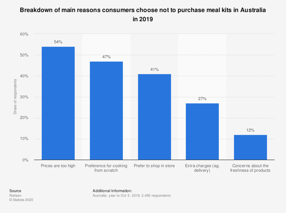 In 2019, 54 per cent of Australian customers chose not to purchase meal kits because of the high price.